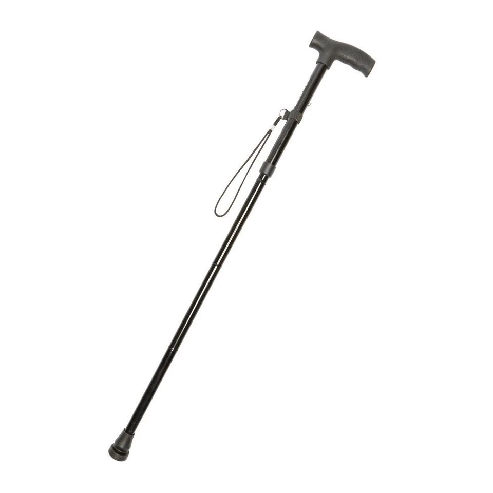 A lightweight, strong and adjustable walking stick that collapses and folds away neatly.